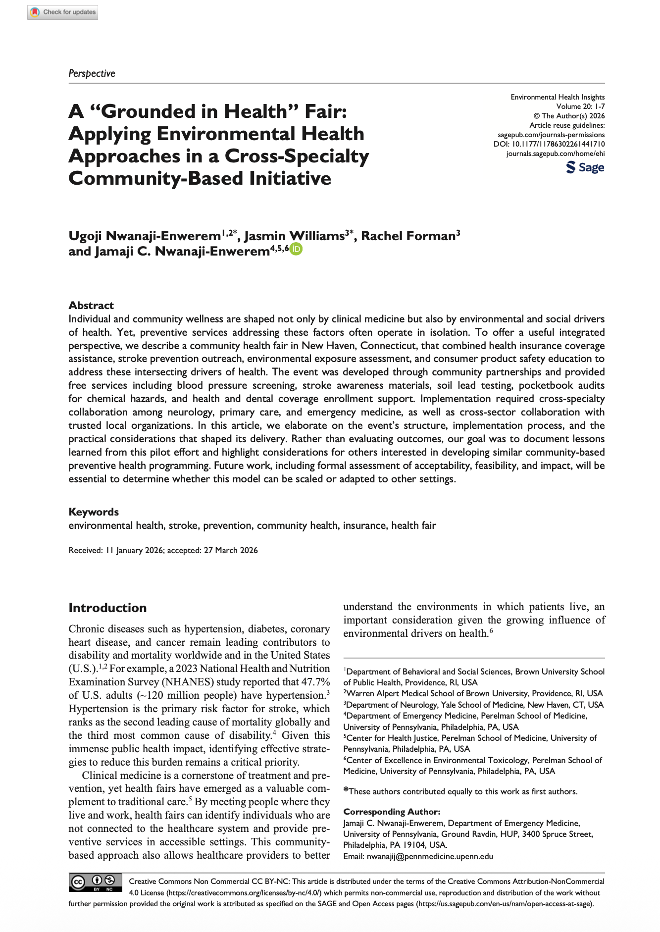 Read about the “Grounded in Health” fair in our commentary in Environmental Health Insights!